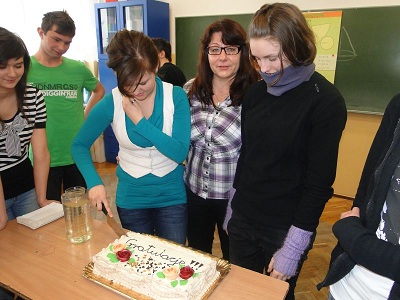 Klasa 3a świętowała wygraną i tytuł laureatki w konkursie chemicznym koleżanki z klasy Agaty Drozdek.